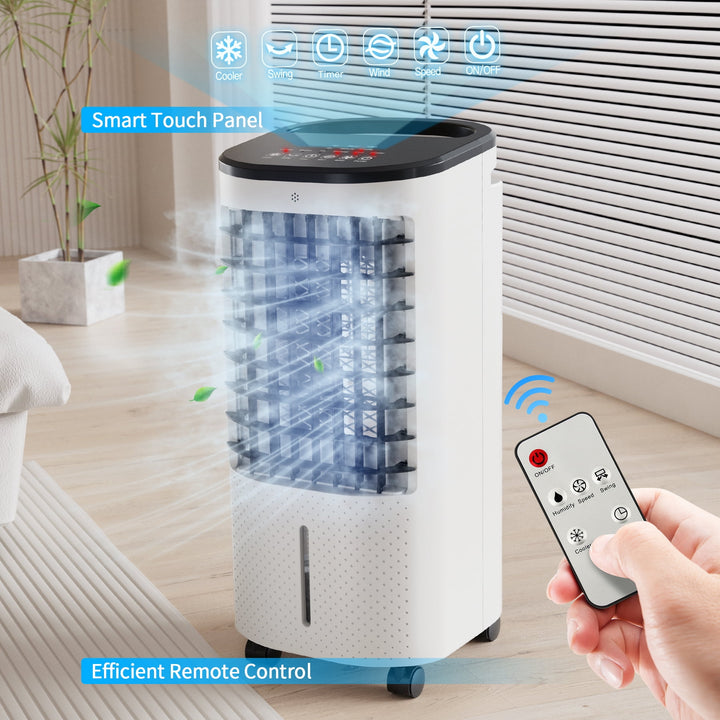 Control Panel and Remote Control: The touch control panel on the top of the air cooler is easy to use and read with indicator lights and provides prolonged service life than buttons. In addition, the package includes a handy remote control, which allows you to control the unit from a distance without getting off the bed or sofa.