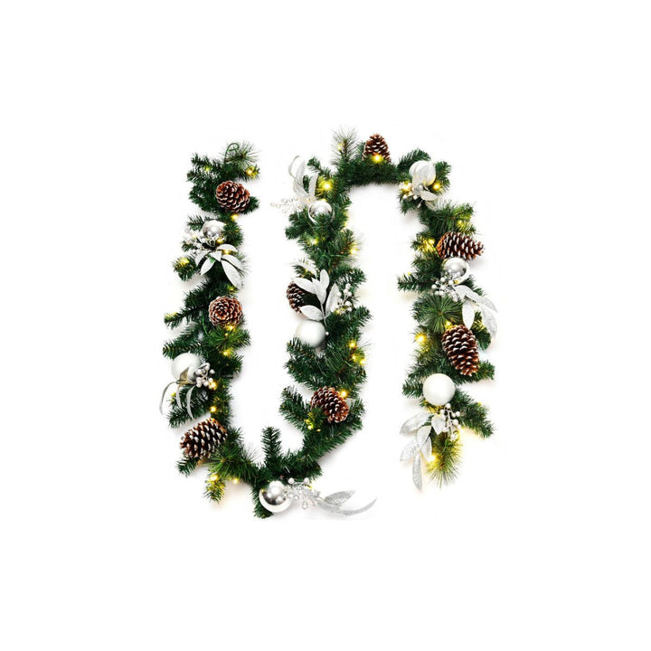 Elevate your holiday ambiance with our SKONYON 9 Feet Pre-Lit Artificial Christmas Garland, designed for both indoor and outdoor use. Adorned with 50 warm white LED lights, it casts a soft,...