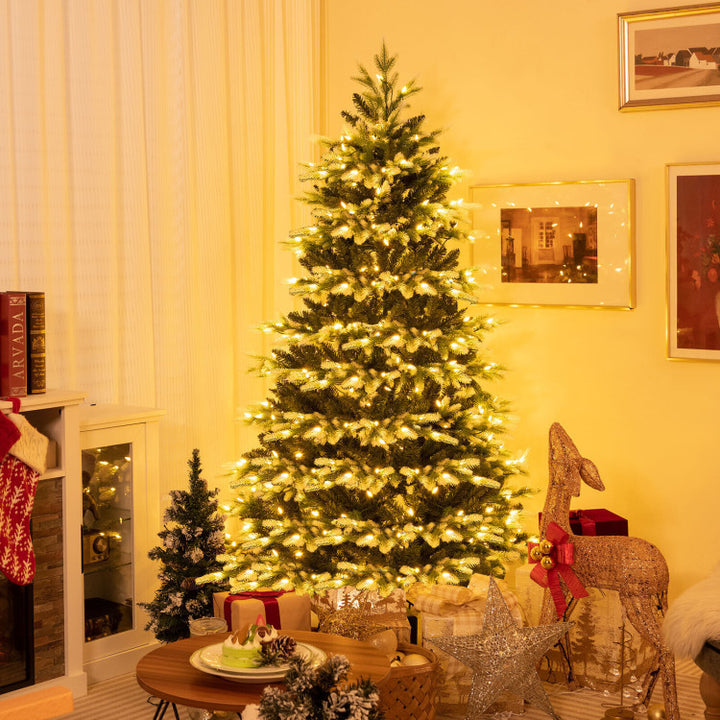 Key Features??? Lush Snowy Branches: At first glance, the 6/7 ft Xmas tree is lifelike and vibrant with up to 1801/2489 branch tips. Upon closer inspection, the color of the leaves changes...