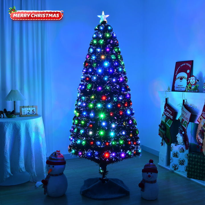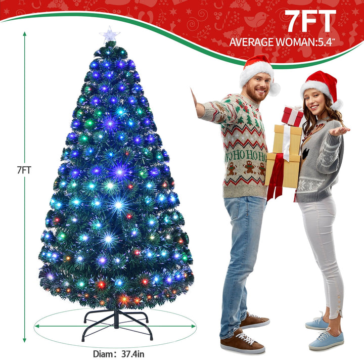 Fenbeli 7ft Pre-Lit Fiber Optic Artificial Christmas Tree, Xmas Tree w/285 Colorful LED Lights, 280 Branch Tips