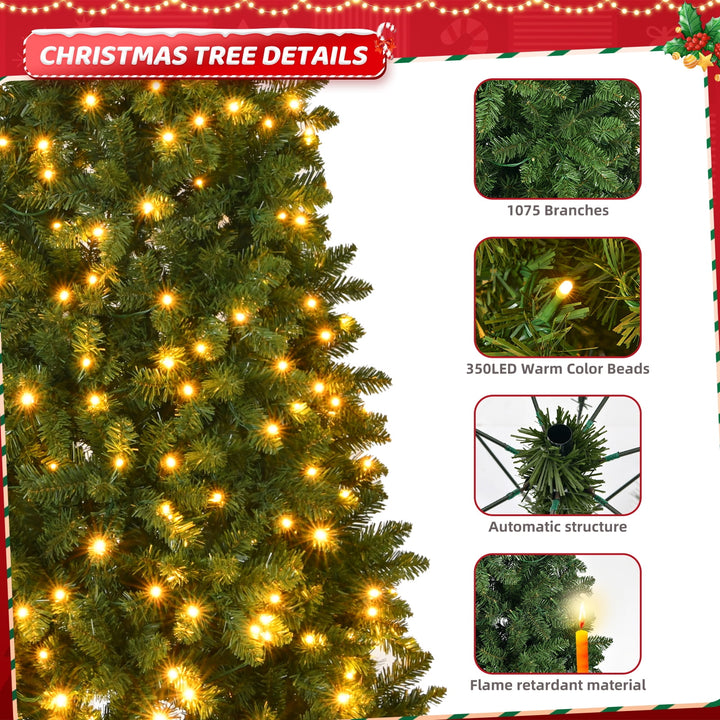 Fenbeli 7.5ft Pre-Lit Christmas Tree w/ 1075 Branches, 350 Warm White Lights