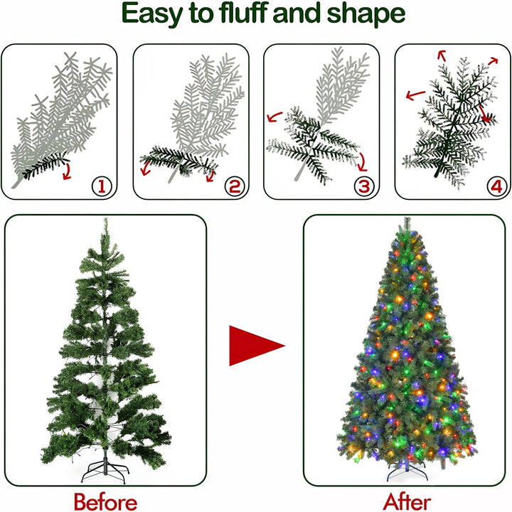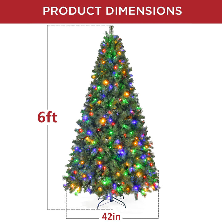 Fenbeli 6ft Pre-Lit Artificial Christmas Tree with 250 Multicolored LED Lights, 8 Sequences, Green