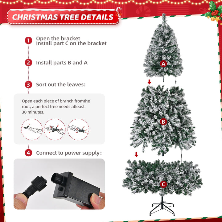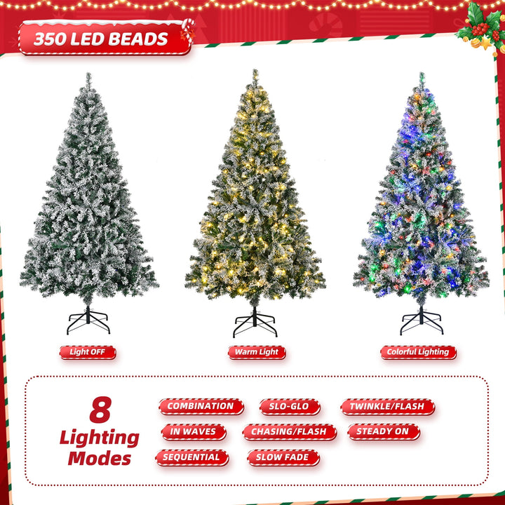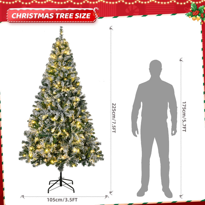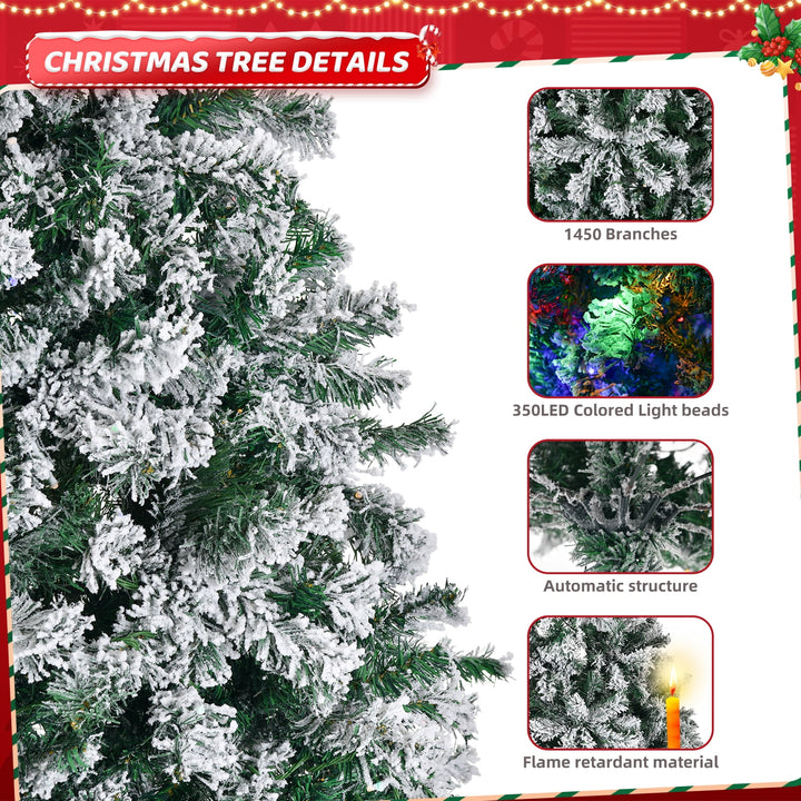 Fenbeli 7.5ft Pre-Lit Premium Snow Flocked Artificial Christmas Tree with 1450 Tips 350 LED Multicolor Lights