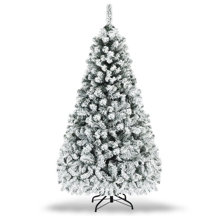 6ft Snow Flocked Christmas Tree, Premium Holiday Pine Branches, Foldable Metal Base