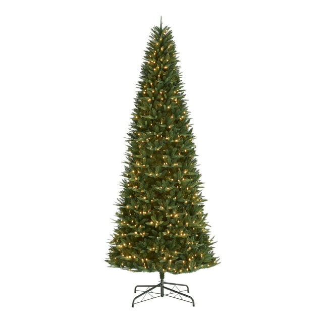 Holiday Time 12-Foot Pre-Lit Rockford Sure-Lit Pole Slim Pine Artificial Christmas Tree 3369 branch tips 800 pre-strung warm white lights (23.04 watts) 12' height makes it perfect as the centerpiece of...