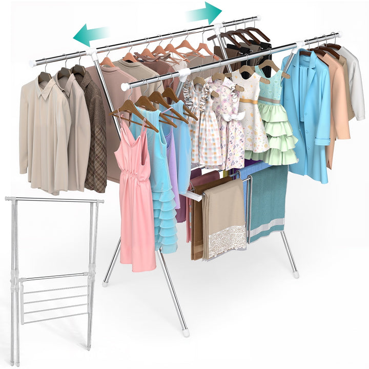 This versatile 63-inch clothes drying rack is a must-have for any household. Made from durable stainless steel, it¡¯s built to last and folds flat for easy storage or transport. The X-frame...