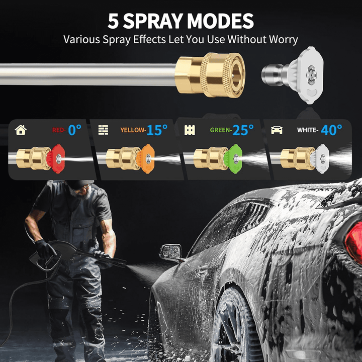 Multiple Nozzles for Precision Cleaning: Includes interchangeable nozzles to adjust spray intensity for light rinsing or heavy-duty scrubbing. Get the right pressure every time.