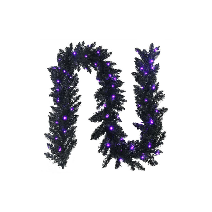 9ft Pre-Lit Festive Garland with 50 Purple LED Lights for Christmas & Halloween