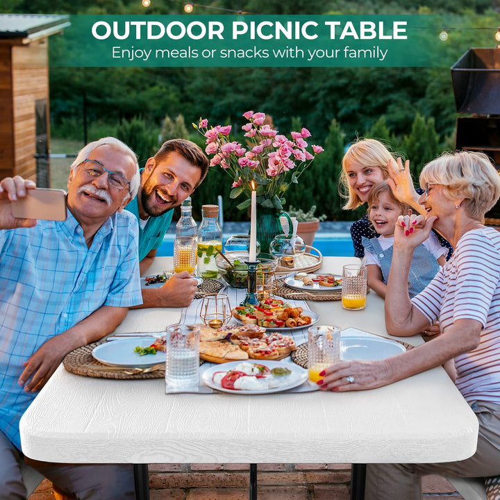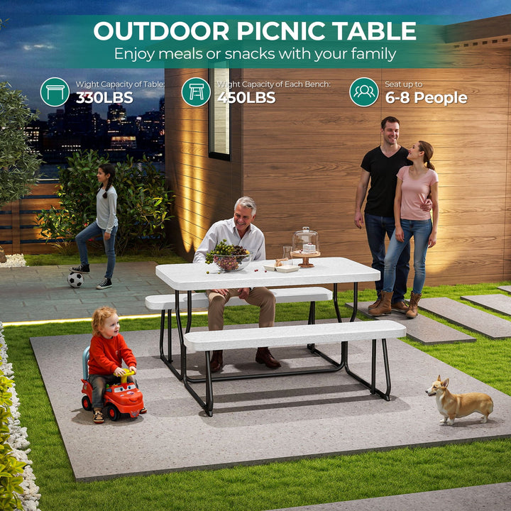 Fenbeli White Outdoor Picnic Table and Bench Set, Weather-Resistant Patio Dining Furniture for Garden, Backyard, Deck