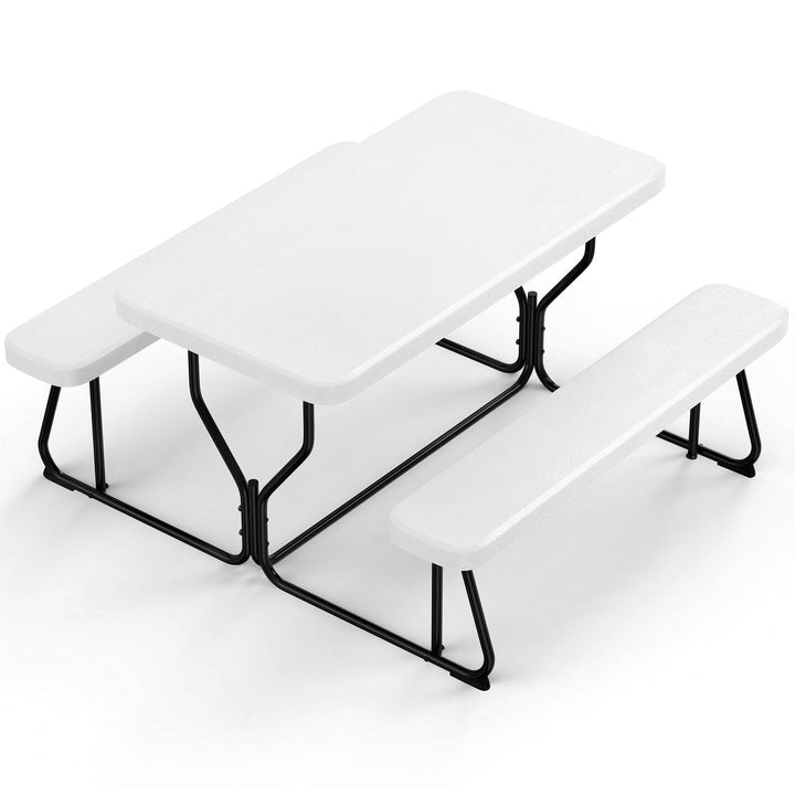 This 4.5-foot picnic table bench set combines durability and functionality, designed for outdoor gatherings, camping, or backyard use. The steel frame ensures stability, while the polyethylene tabletop offers weather-resistant performance, suitable for all seasons. With a sleek black finish and modern design, it seamlessly blends into any outdoor space.