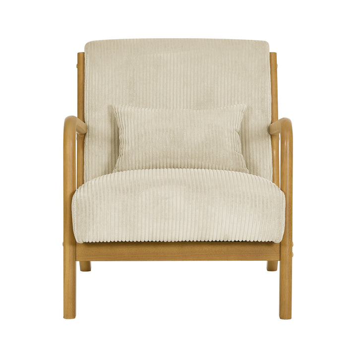 Furnibear Accent Chair, Thick Padded Corduroy Armchair with Solid Wood Frame - Easy Assembly,Beige