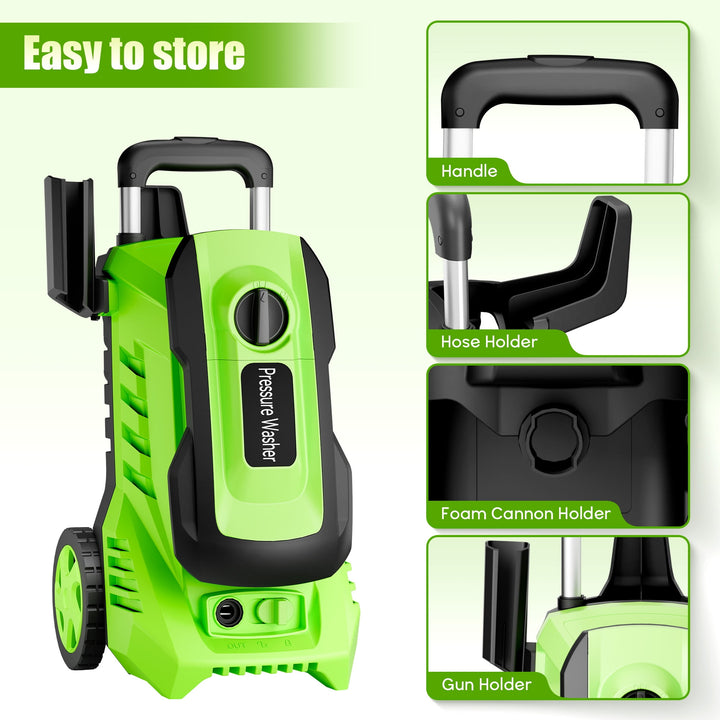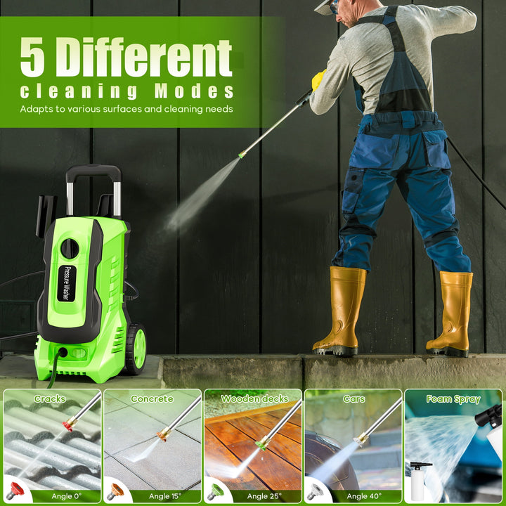 Electric Pressure Washer, 3800PSI 2.6 GPM Power Washer with 5 Quick Connect Nozzles, High Pressure Cleaning Machine with Foam Cannon for Cars, Fences, Patios, Driveway,Green