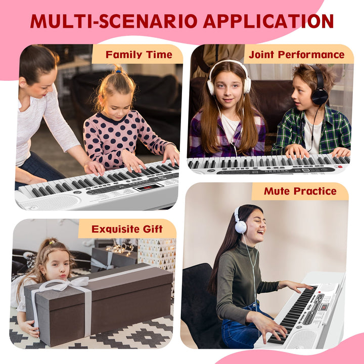 Fenbeli 61 Key Piano Keyboard with Lighted Keys Electric Keyboard Kit with Stand, Bench, Headphones, Built-in Speakers, White