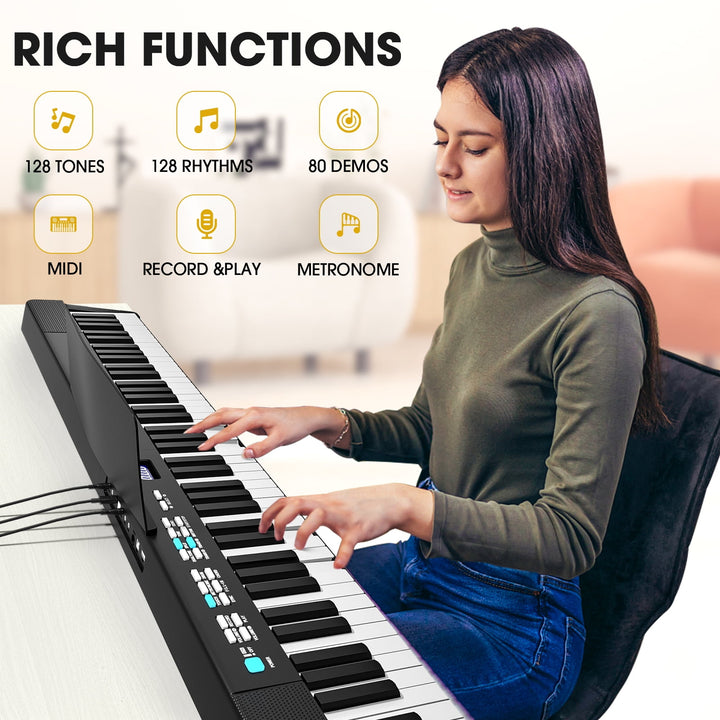 Multiple Functionalities for Creative Play: Featuring record, playback, sustain, transpose, metronome, drum kit, and dual voice functions, the piano keyboard 88 keys provides creative versatility. With 128 tones, 128 rhythms, 80 demo songs, built-in speakers, battery operation, and headphone compatibility, play whenever and wherever inspiration strikes.