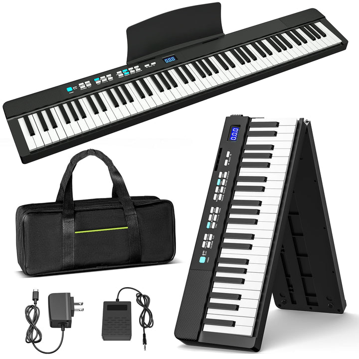 Foldable & Portable Electric Piano Design: With its one-button fold mechanism, this electric piano offers easy space-saving portability. Enjoy the acoustic piano feel and rich tones wherever you are, turning any setting into a personal studio or performance space.