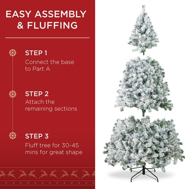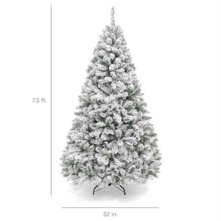 Fenbeli 7.5ft Snow Flocked Hinged Artificial Christmas Tree without Lights, White This is a 7.5 ft Christmas tree that is designed with 1346 branch tips and snow flocked leaves to offer...
