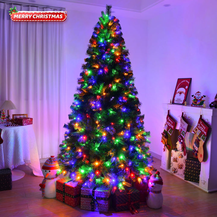 Fenbeli Pre-Lit Artificial Christmas Tree 7.5ft with 450 Clear Incandescent Mini Lights, Green