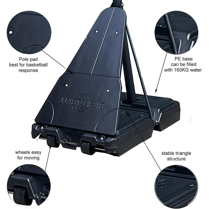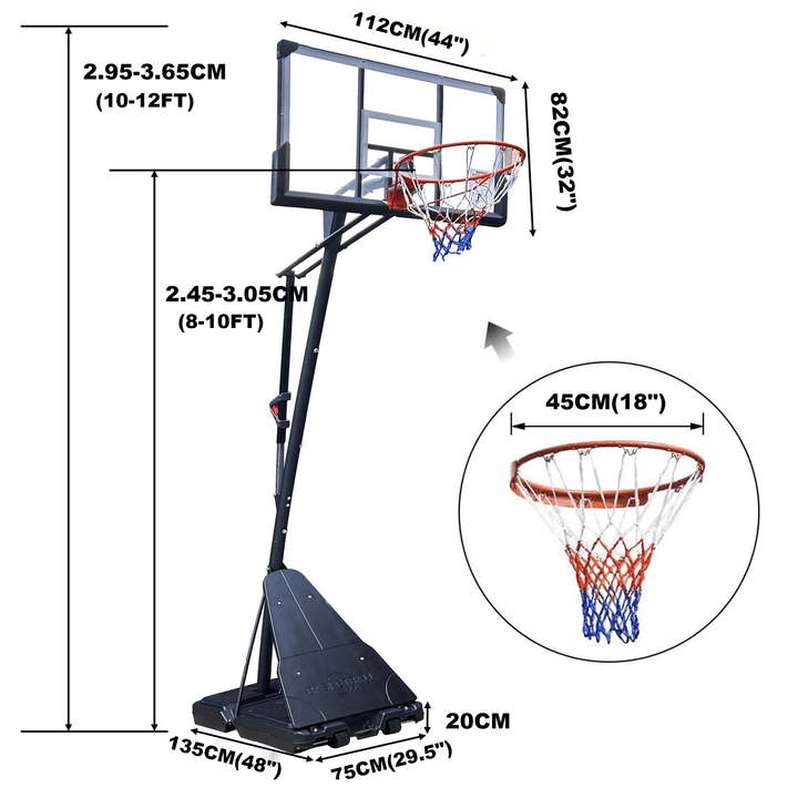 This portable basketball system from Fenbeli features a 44in. Shatter-Proof backboard with a Quick Adjust height adjustment mechanism that adjusts from 8 to 10 feet high. It also includes a Classic...