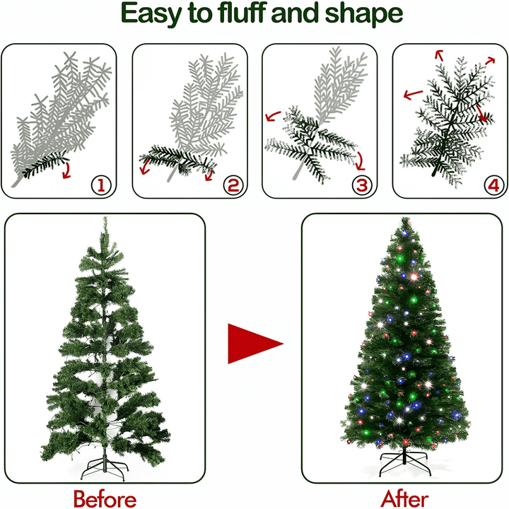 Fenbeli 6ft Pre-Lit Artificial Christmas Tree with 250 Multicolored LED Lights, Indoor Outdoor Green