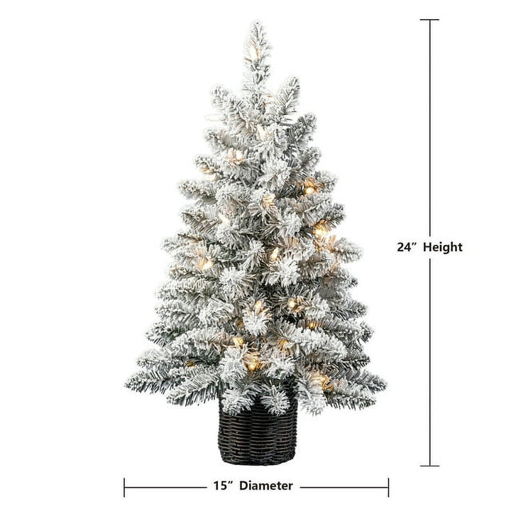 Fenbeli 24 Pre-Lit Cooper Flocked Spruce Artificial Christmas Tree with Clear LED Lights