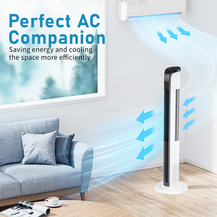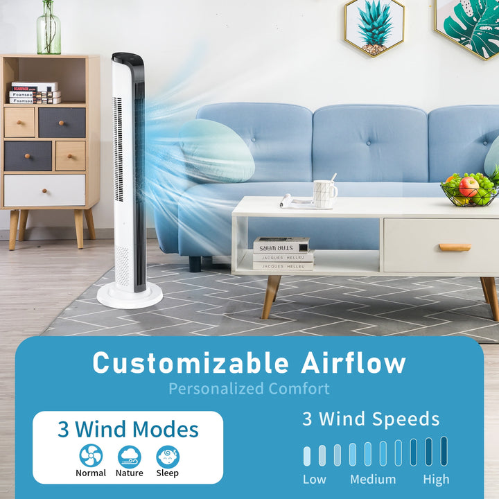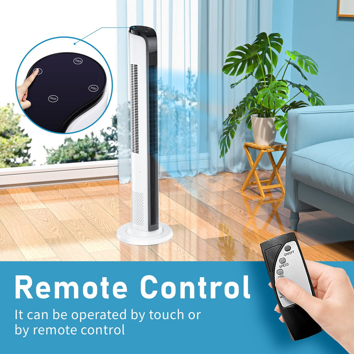 43inch Tower Fans for Home with Remote for Bedroom with 3 Speeds, 3 Modes, White
