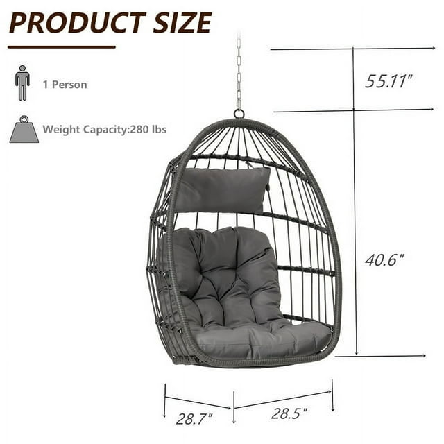 This outstanding outdoor swing hammock chair, featuring a comfortable cushion and pillow, boasts excellent quality and an appealing egg shape. Ideal for snuggling in on a warm and sunny day, accompanied by a good book and a cup of coffee, this swing egg chair, even without a stand, is a perfect addition to your patio, porch, or lawn. Its chic design also makes it a stylish seat for your living room or bedroom, ensuring comfort for both you and your children. This hanging chair is not only a delightful personal retreat but also an excellent choice as a gift for your family and friends. Don't miss out¡ªbuy it now!