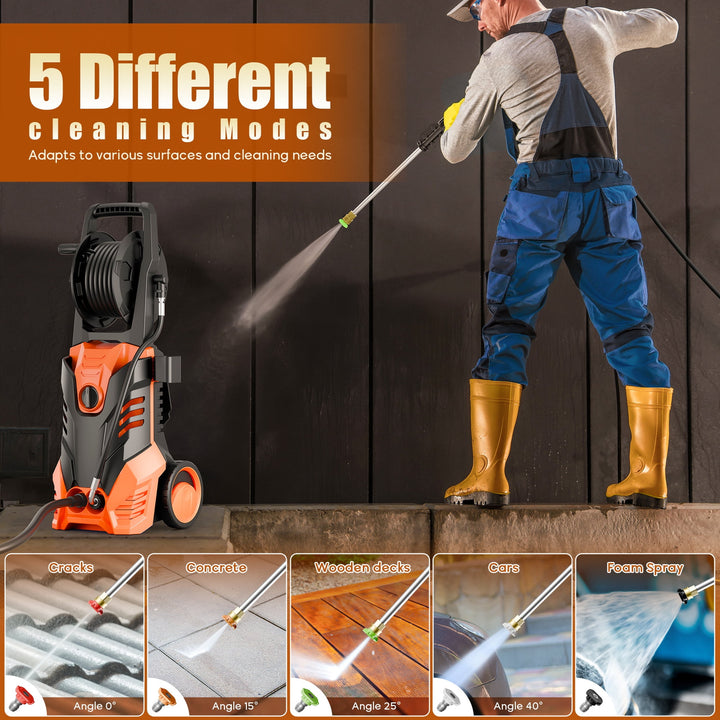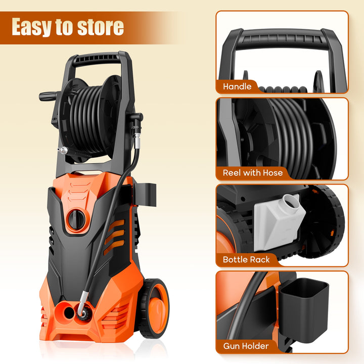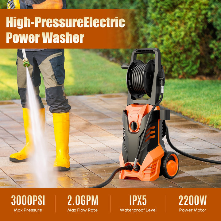 Fenbeli 3000 PSI Electric Pressure Washer, 2.0 GPM Power Washer with Hose Reel, 2000W High-Efficiency Cleaner for Cars, Homes, Driveways, and Decks