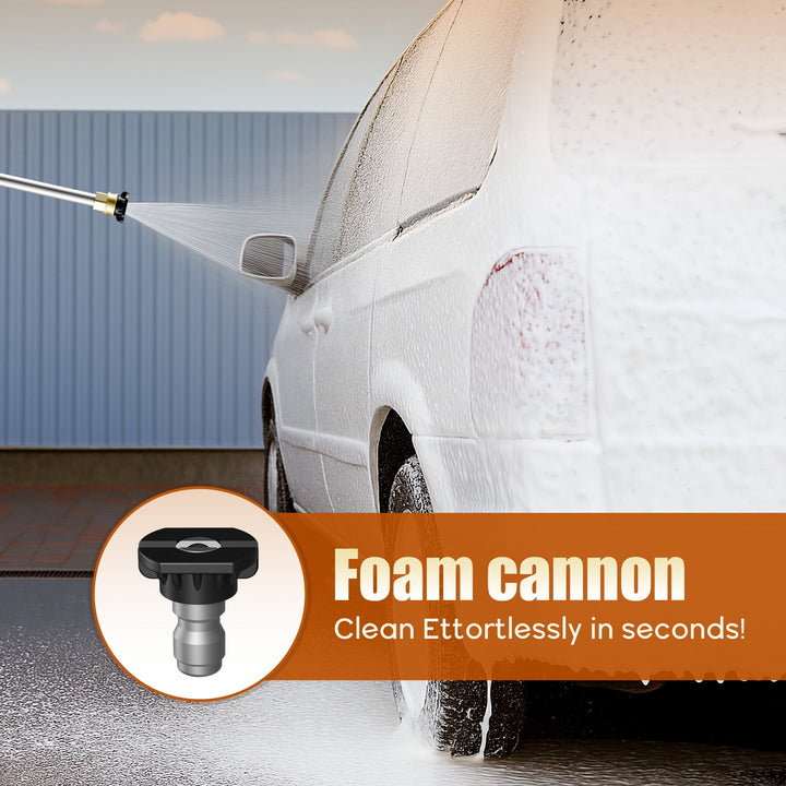 5 Quick-Connect Nozzles: Includes 0¡ã, 15¡ã, 25¡ã, 40¡ã, and soap nozzles for adjustable spray patterns¡ªperfect for both heavy-duty and delicate cleaning jobs.