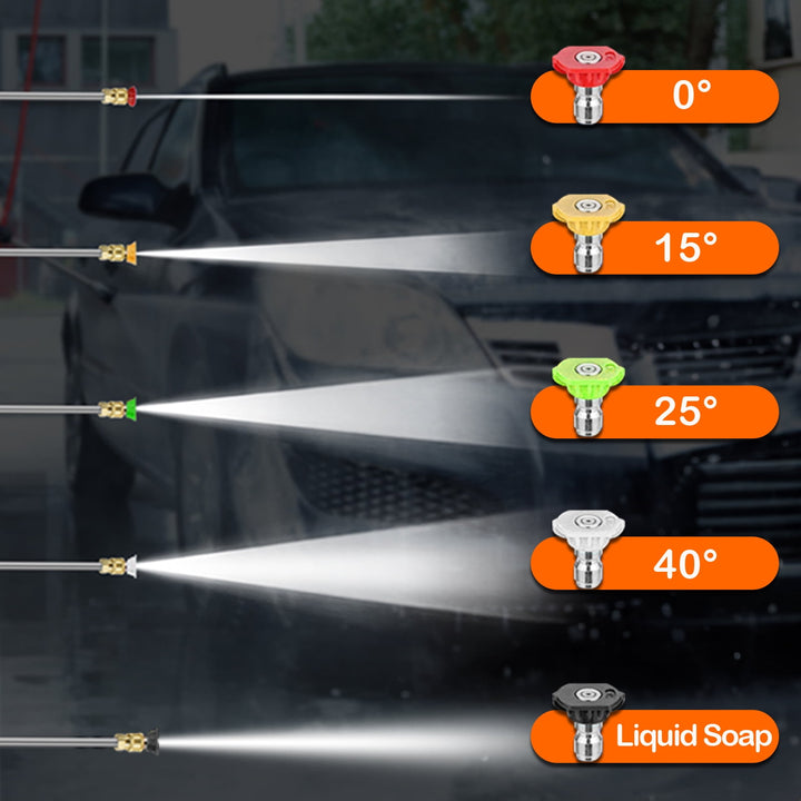 Featuring an intuitive power washer touch screen, you can easily adjust the pressure settings to suit your specific cleaning needs, providing versatility for various surfaces¡ªfrom delicate car exteriors to tough concrete driveways. The included 4 quick connect nozzles let you switch between different spray patterns effortlessly, giving you precise control over your cleaning tasks.