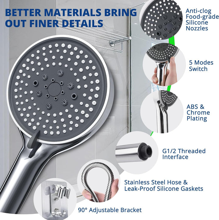 Advanced Spray Innovation: Our shower heads high pressure will tailor your shower experience to perfection with our removable handheld showerhead's 5 distinct spray modes. Whether you prefer a gentle mist or...