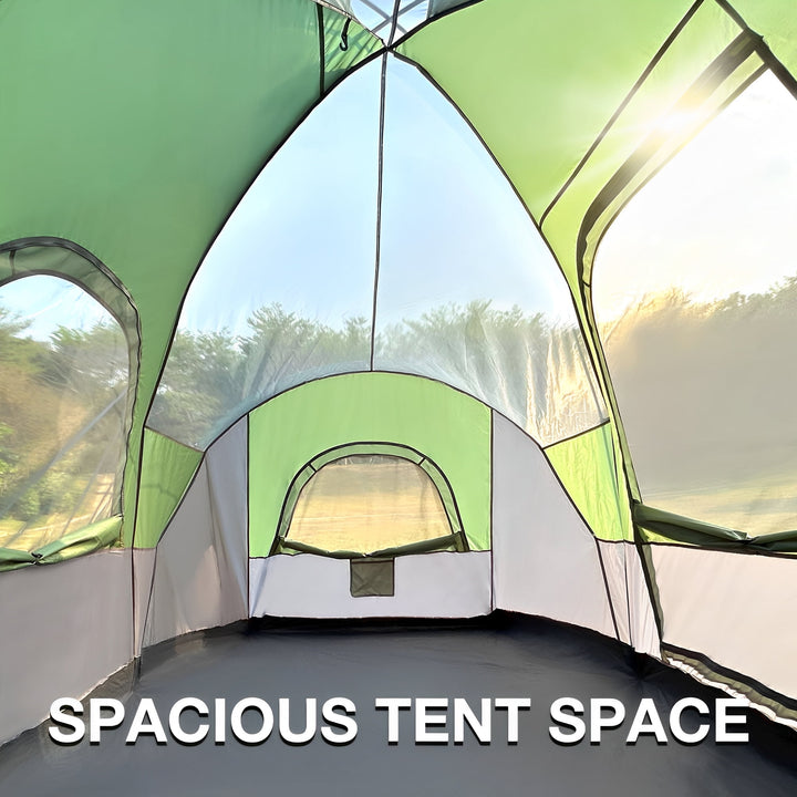 Enhanced Ventilation & Wind Resistance: This large tent features a 360-degree airflow system with 1 large mesh door, 3 windows, plus 14 steel stakes for stability; perfect for pop up tents for camping needs.