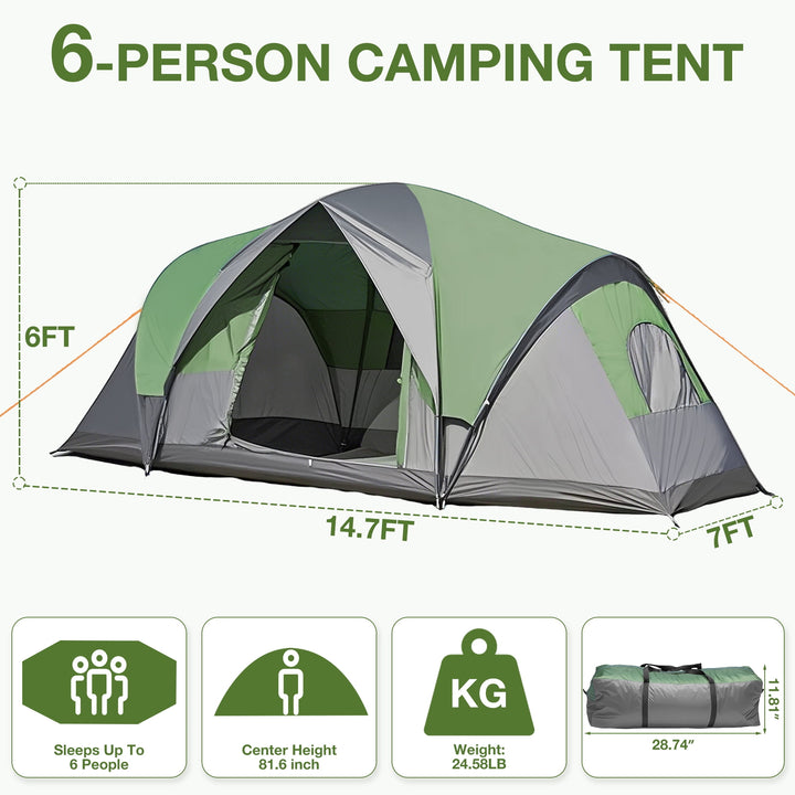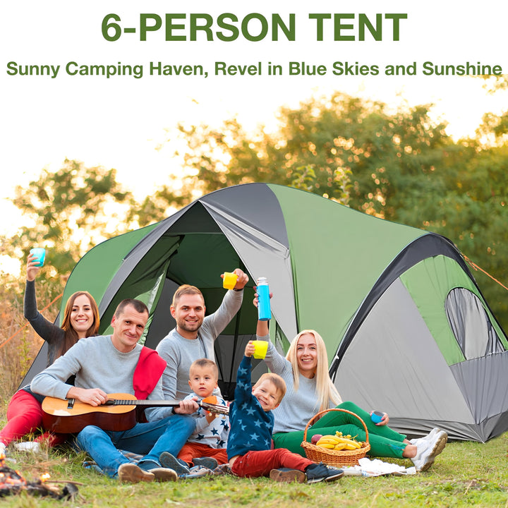 Enjoy hassle-free adventures with this easy-to-set-up camping tent! Built with durable, water-resistant materials, this family tent offers spacious comfort for 5-6 people. Lightweight and portable, it's the perfect tent camping companion for all your outdoor journeys.