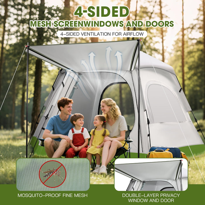 Fenbeli Camping Tent for 4 Person All-Season Family Tent with Metal Door Poles, Pop Up Tents for Camping and Hiking