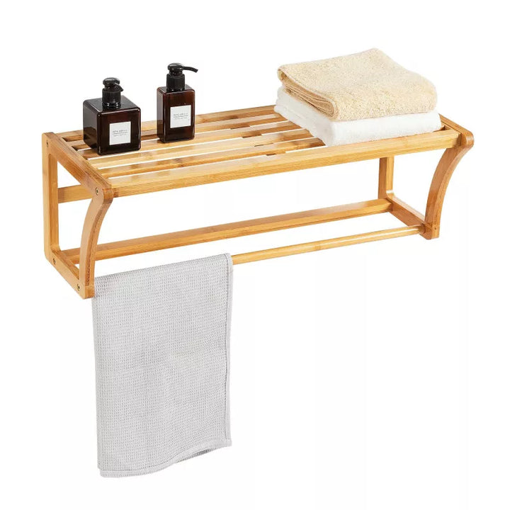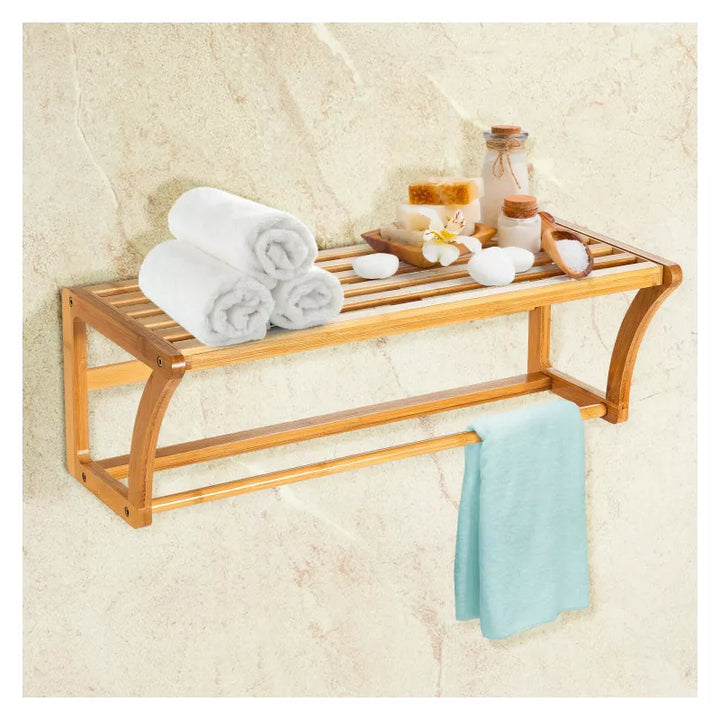Bamboo Wall Mounted Towel Rack Bathroom Shelf for Stylish Storage