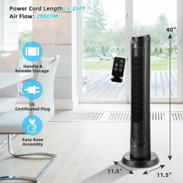 40 Inch Tower Fan with Remote 75C Oscillating Fan with 3 Wind Modes and 4 Wind Speeds