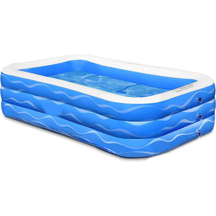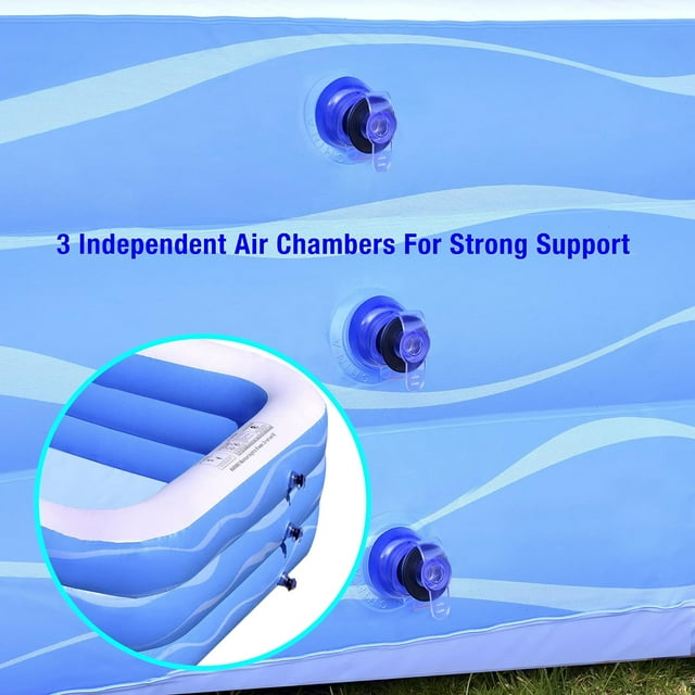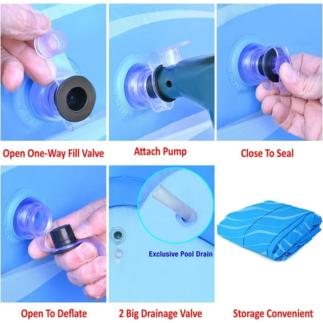 Easy and quick set-up: we cut the struggle so you can leap into your backyard paradise minutes after the box arrives at your door. The family pool inflates in 3 minutes with included air pump!